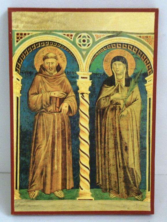 icona su legno foglia dorata s.francesco e chiara ...