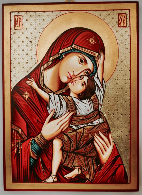 icona madonna della tenerezza manto rosso dipinta ...