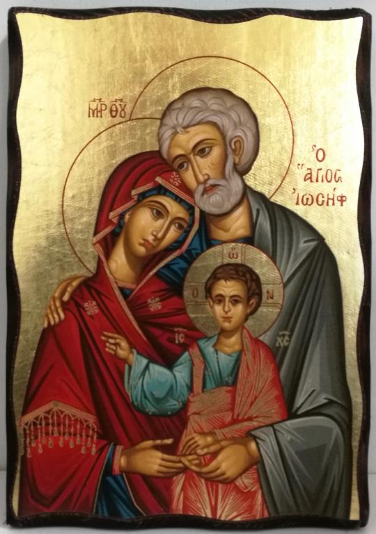 icona sacra famiglia dipinta a mano misura cm.32x22