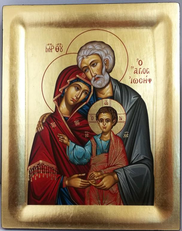 icona sacra famiglia dipinta a mano misura cm.32x22