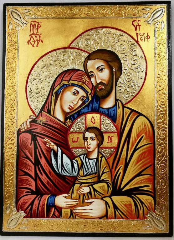 icona sacra famiglia dipinta a mano misura cm.32x22