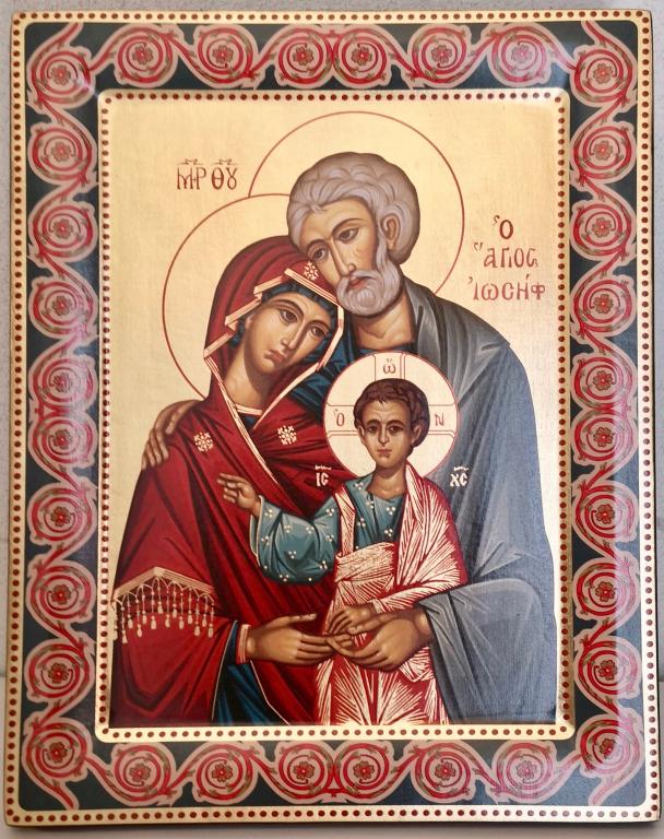 icona sacra famiglia dipinta a mano misura cm.32x22
