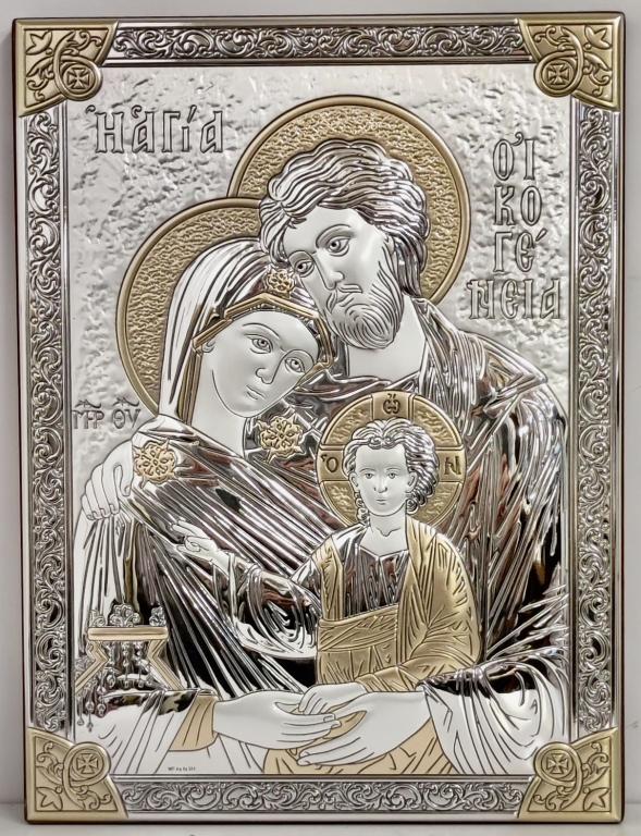 icona sacra famiglia su lastra di argento colore ...