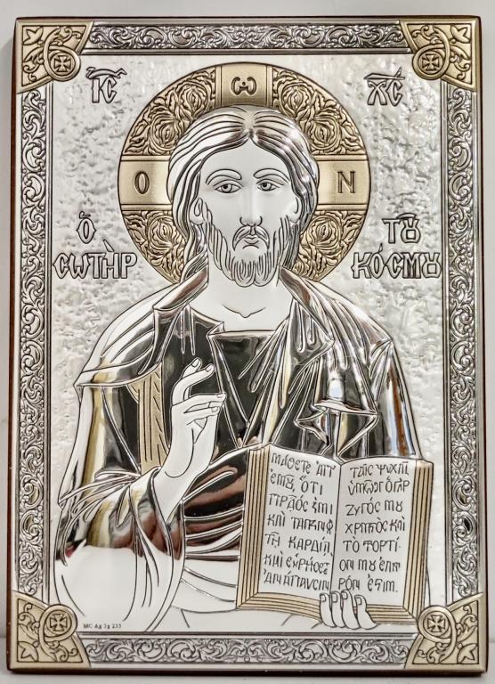 icona pantocrator in legno su tela serigrafata cm.22 ...
