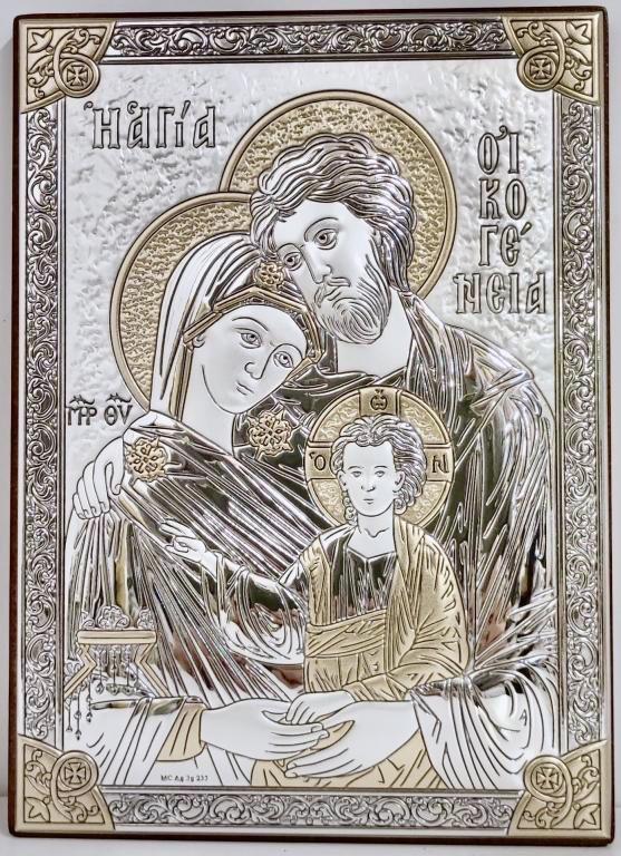 icona sacra famiglia su lastra di argento con riporto ...