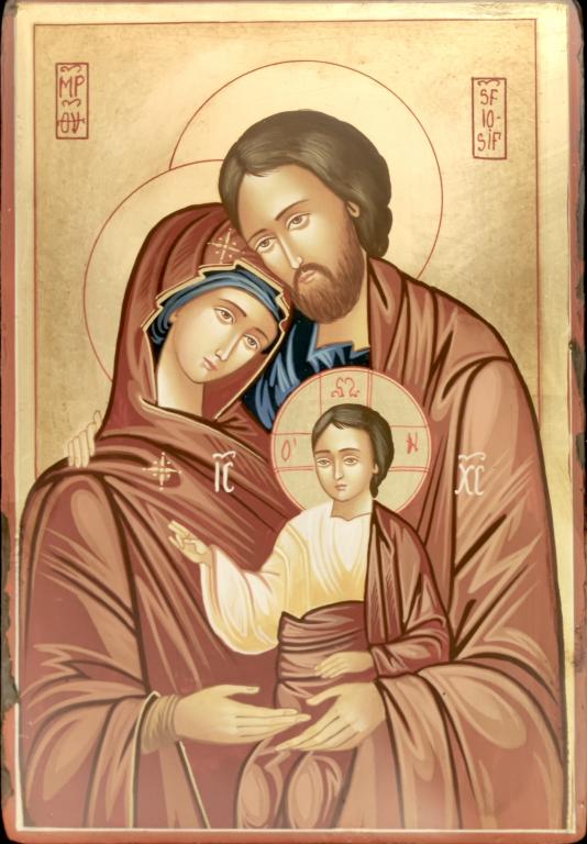 icona sacra famiglia dipinta a mano misura cm.32x22