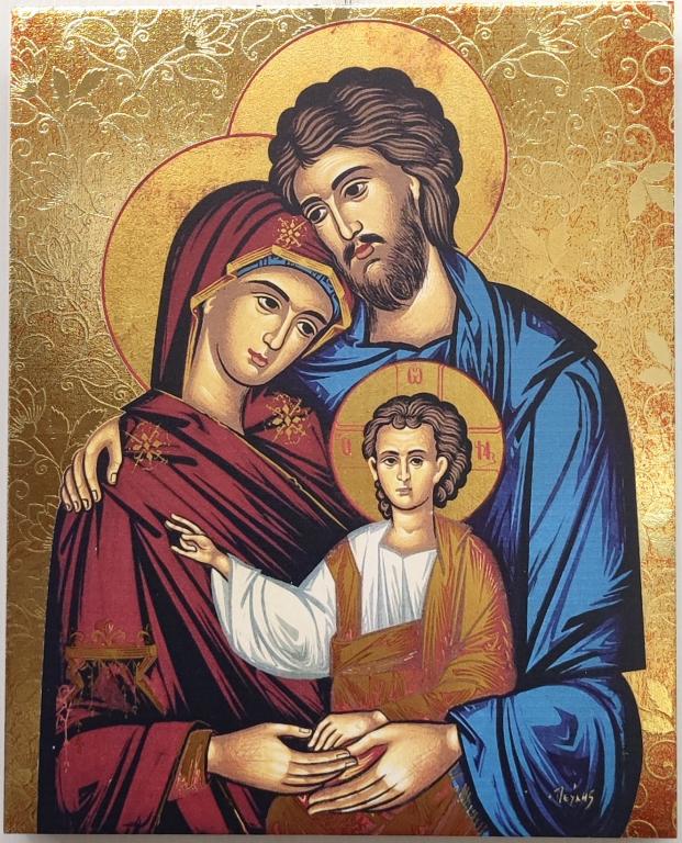 icona sacra famiglia dipinta a mano misura cm.32x22