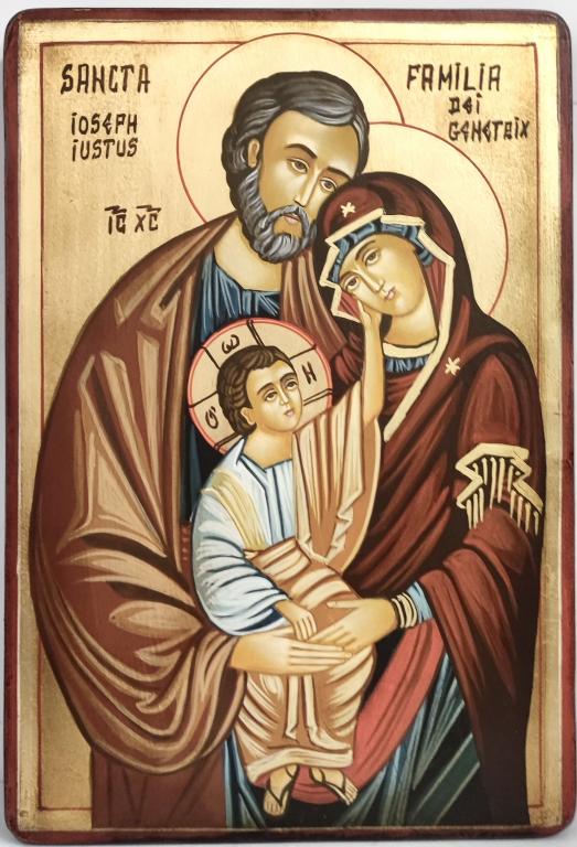 icona sacra famiglia dipinta a mano misura cm.22x32