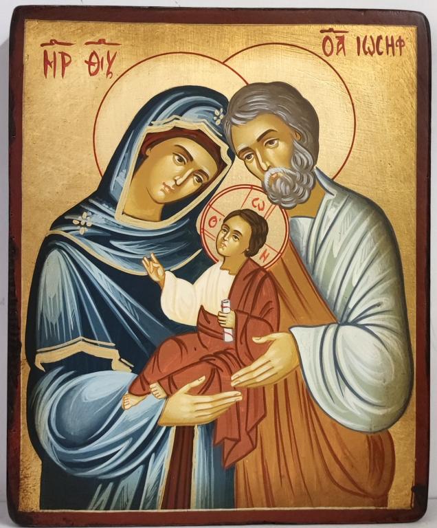 icona sacra famiglia dipinta a mano misura cm.32x22