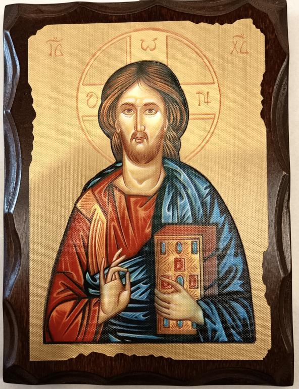 icona greca pantocrato serigrafata bordo legno cm.14x11