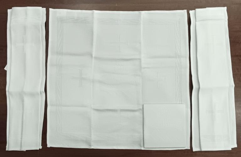 servizio da messa in lino 100% 4 pezzi ricamo croce ...
