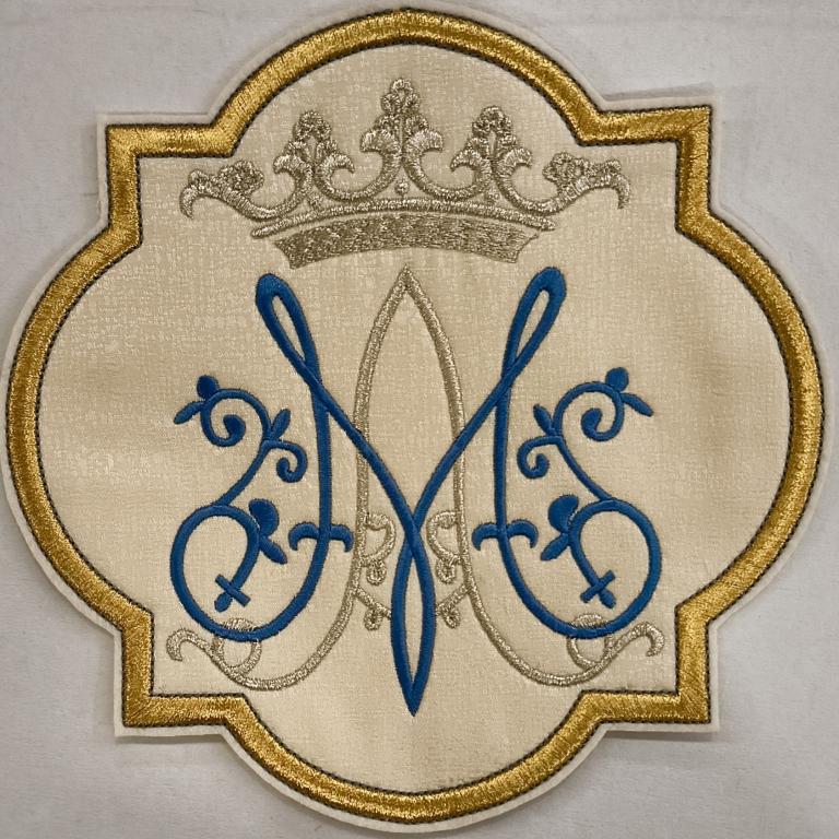 emblema mariano ricamato oro cm.8x6 termadesivo