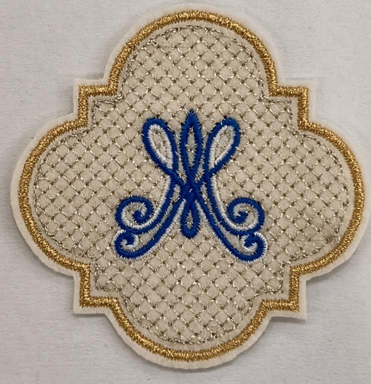 emblema mariano ricamato oro cm.8x6 termadesivo