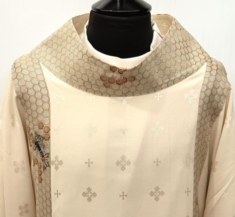 dalmatica lana 100 % con simbolo francescano col.bianco